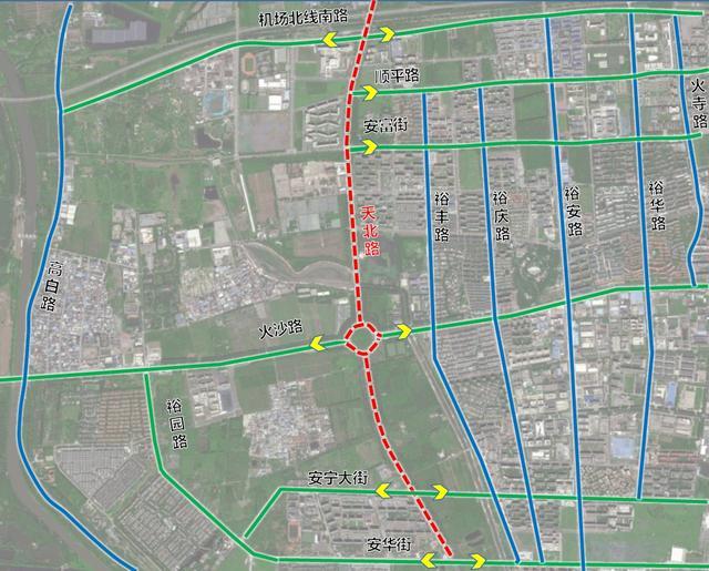 为最大限度降低施工对市民出行的影响,工程将结合现场实际情况,分阶段、分路段有序进场施工。第一阶段先行启动安华街-罗马环岛段施工。施工期间,工程拟采取“半幅施工、半幅导行”的方式保障天北路的基本通行,剩余半幅主路临时调整为双向4条机动车道,行人及非机动车通过主路两侧慢行系统有序通行。